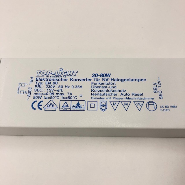 80w halogentransformator, med 6 uttag, till Natal och Bahia spegelskåp.