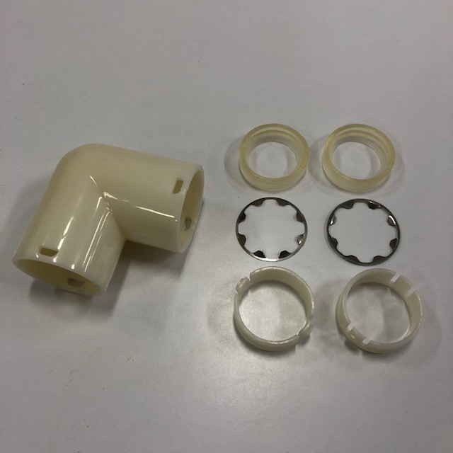 90 graders kopplingför 28 slang, till limfria massagebadkar.