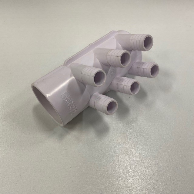 Grenrör med 6 utgångar, hona med stopp i andra änden. Passar slang 90003560 och 90003526.