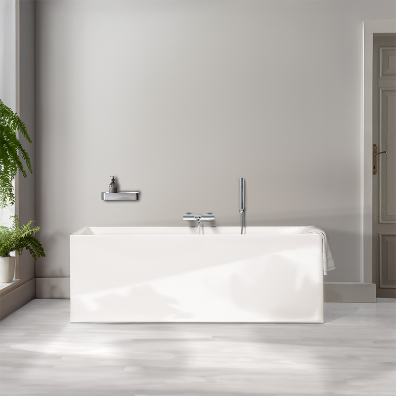Ett badkar i spännande design och med en härlig rymd tack vare sina mått. Lite bredare och lite djupare. Sanitetsakrylen ger en mjuk yta och gör karet lätt att hålla rent.