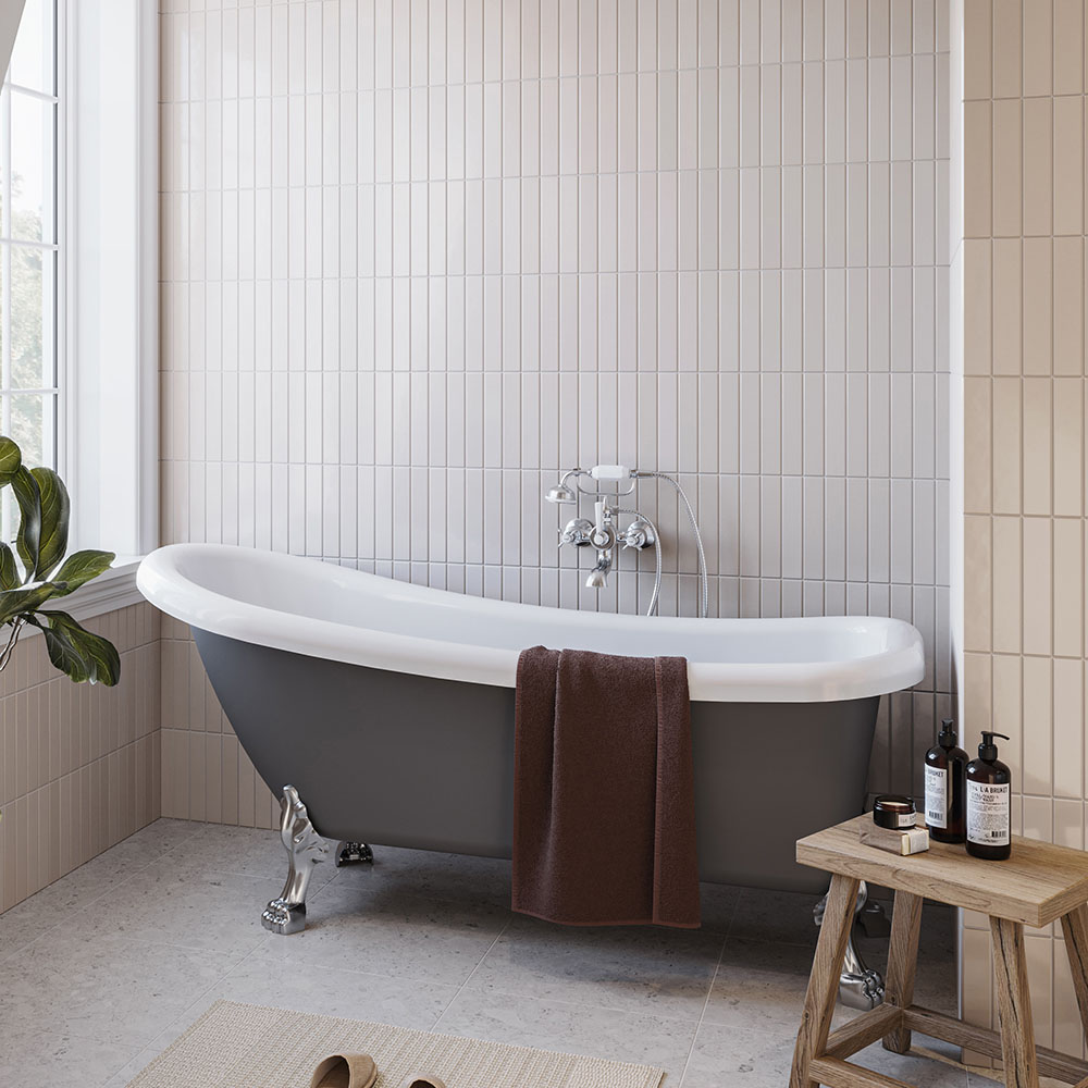 Westerbergs Badkar Sofia är ett tassbadkar av sanitetsakryl i klassisk stil. Välj mellan flera färger på kar och ställbara fötter. Bottenventil samt avloppssats ingår. Köp till badkarsblandare.