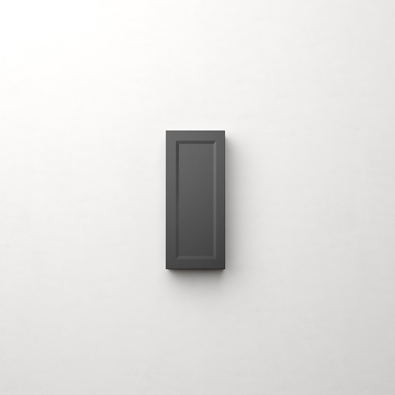 Grunt väggskåp med en mjukstängande lucka som kan monteras höger- eller vänsterhängd. Grepp undertill. Flyttbara hyllplan i glas som sitter säkert fixerade av hyllbärarna. Justerbara upphängningsbeslag för enkel montering. Stommen är färdigmonterad.