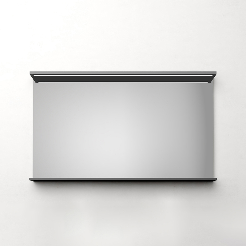 Spegel med funktionell belysning och infälld LED-profil med varmvitt ljus. Praktisk hylla för avställning. Enkel installation för en person med justerbar upphängningsregel. Förberett för el-installation. IP24.