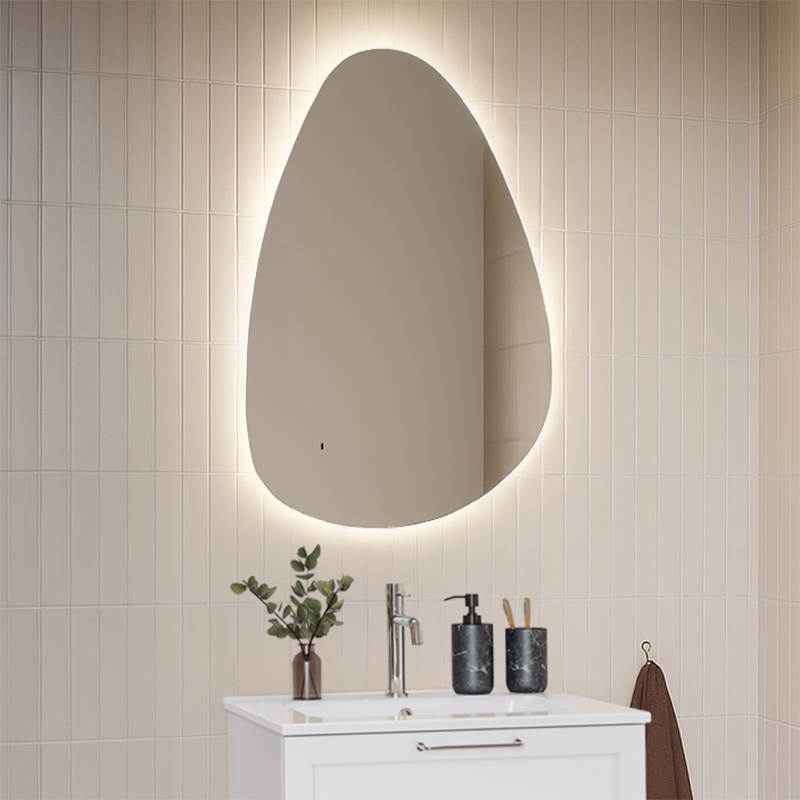 Spegel Westerbergs Vind kombinerar en mjuk, asymmetrisk form med funktionell bakgrundsbelysning som sprider ett varmt, inbjudande ljus i badrummet. Med hjälp av den integrerade rörelsesensorn kan du enkelt tända, släcka och ändra ljusstyrkan på spegeln med enkla handgester, och slippa onödiga fingeravtryck på spegelglaset.