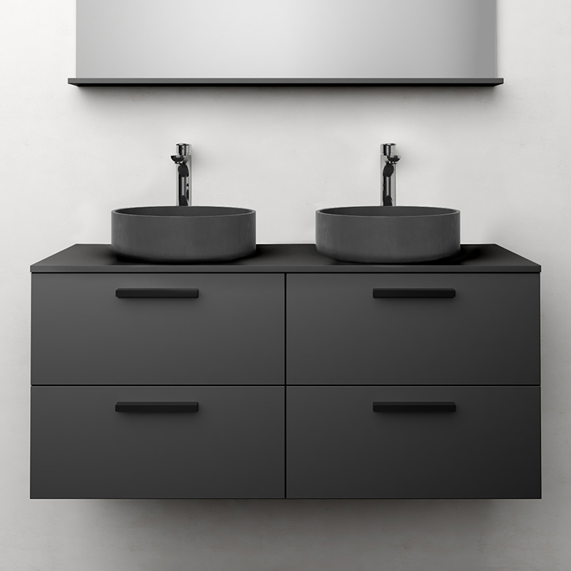 Jord är ett modernt tvättställsskåp med mjukstängande lådor med fullutdrag och lådsidor av metall. En urtagbar matta i botten på lådorna gör att saker står på plats samt underlättar vid rengöring. Övre lådan har en U-konstruktion som lämnar utrymme för vattenlås. Möbeln är förberedd för både golv- och väggavlopp och har justerbara upphängningsbeslag. Köp till handtag, CC32, 96 och 160.