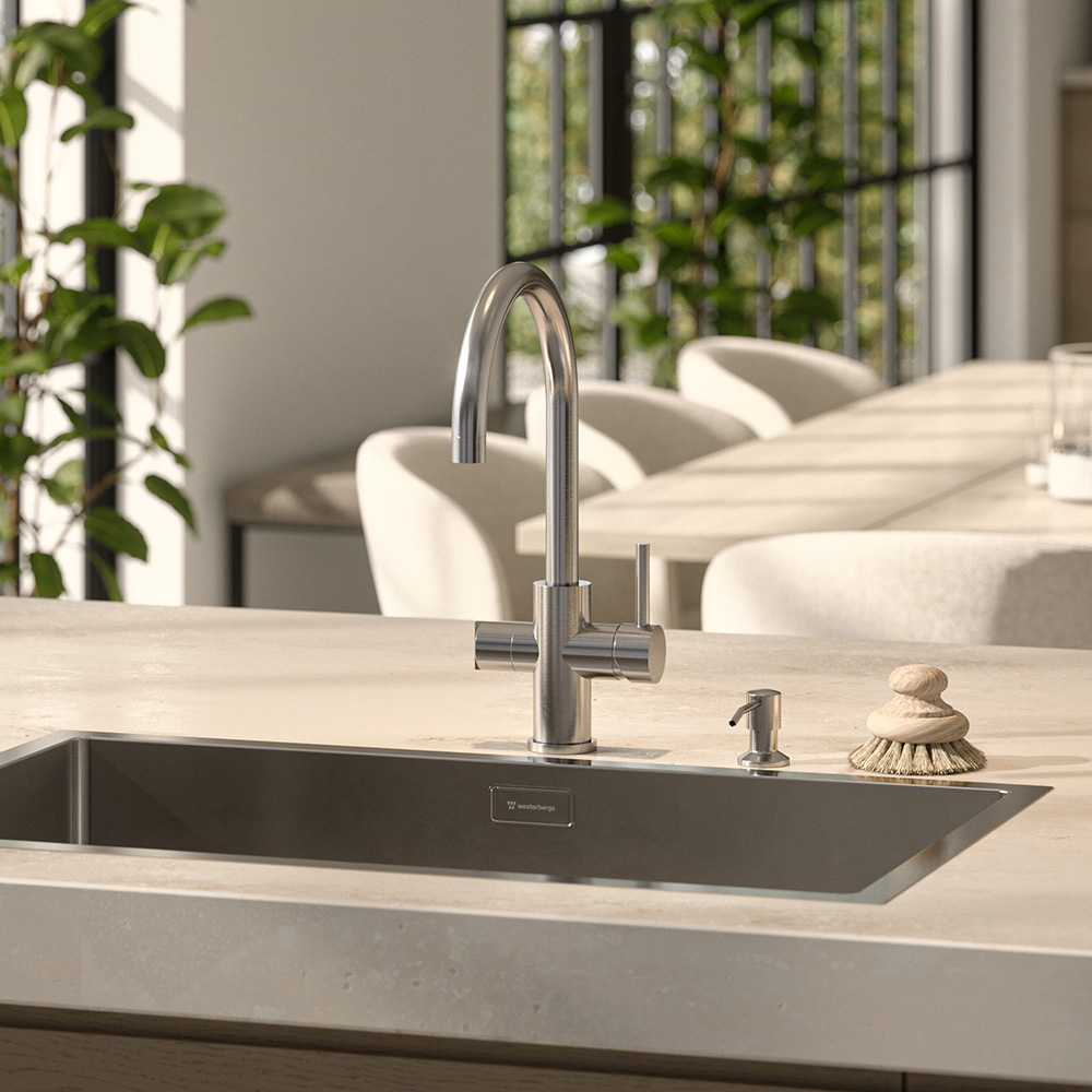 Westerbergs Ciconia är en stilren köksblandare med mjukt rundade former och praktisk diskmaskinsavstängning, designad för att passa lika bra i kök som tvättstuga. Den är tillverkad i högkvalitativt rostfritt stål och utrustad med en svängbar pip som underlättar arbetet vid både disk- och tvättho.