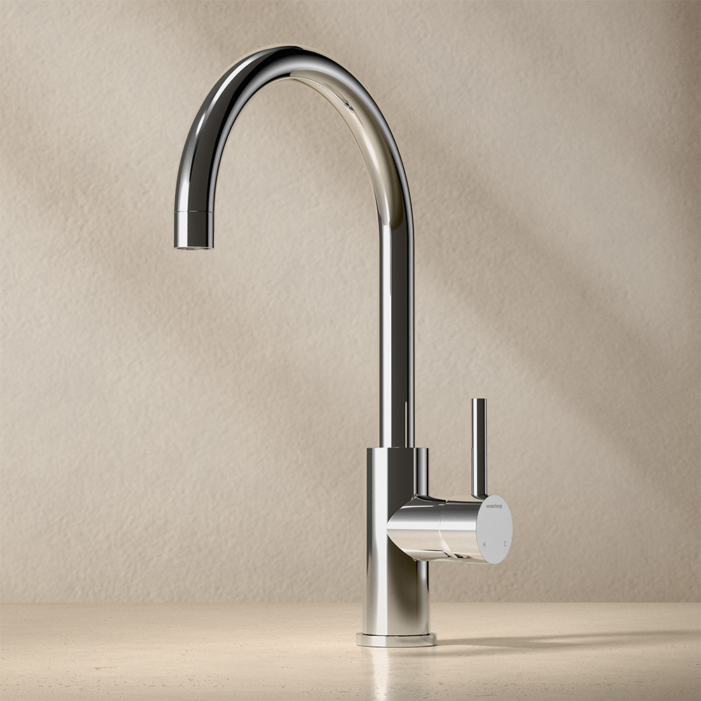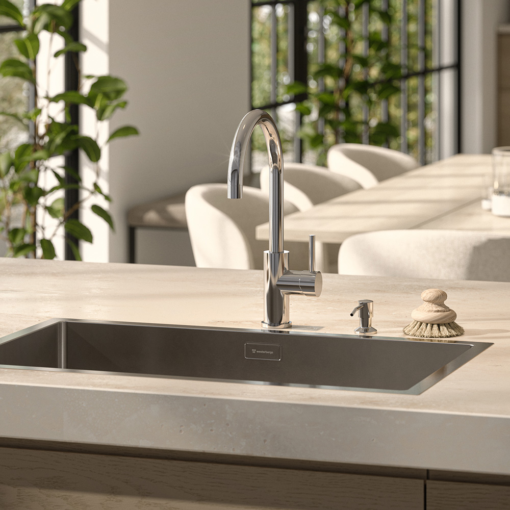 Westerbergs Ciconia är en stilren köksblandare med mjukt rundade former, utformad för att passa i både kök och tvättstuga. Den är tillverkad i högkvalitativt rostfritt stål och har en vridbar pip som gör arbetet vid disk- eller tvättho enkelt.