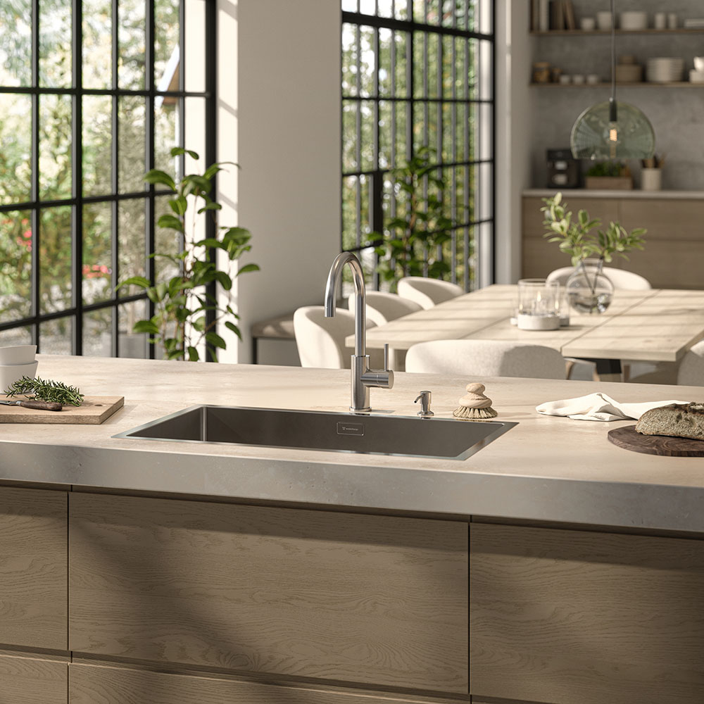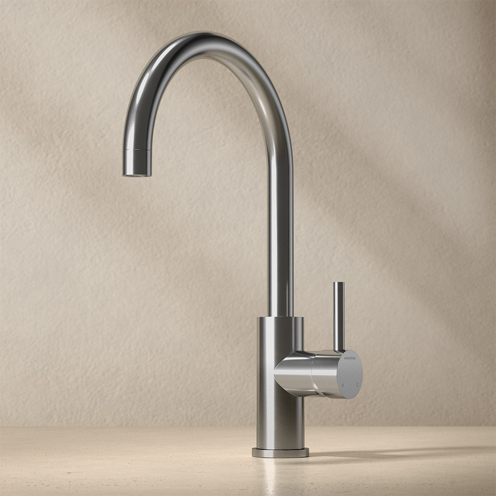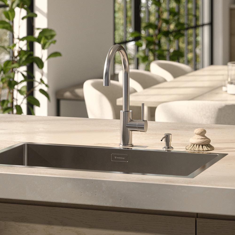 Westerbergs Ciconia är en stilren köksblandare med mjukt rundade former, utformad för att passa i både kök och tvättstuga. Den är tillverkad i högkvalitativt rostfritt stål och har en vridbar pip som gör arbetet vid disk- eller tvättho enkelt.