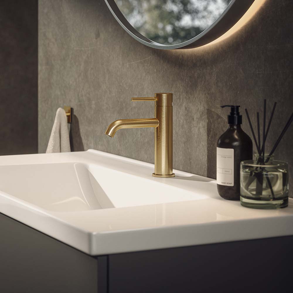 Corax blandare finns i flera kulörer som lyfter badrummets helhetskänsla. Komplettera med bottenventil och överfyllnadsring i samma finish för en enhetlig och exklusiv look i badrummet.