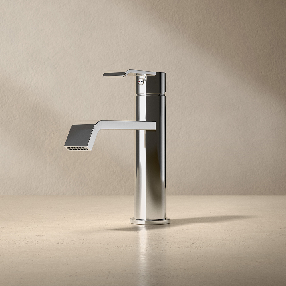 Westerbergs Loxia är en elegant tvättställsblandare i högkvalitativt rostfritt stål. Den platt formade pipen ger ett mjukt, vackert vattenflöde likt ett vattenfall. Monteringen är smidig och görs utan verktyg, oavsett om blandaren placeras på tvättställ eller bänkskiva.