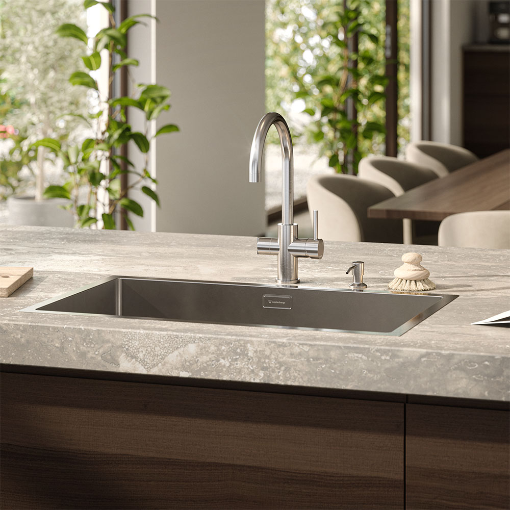 Esox är en diskho i högkvalitativt rostfritt stål – ett hygieniskt, slitstarkt och tidlöst material som är enkelt att hålla rent. Den kan nedfällas, planmonteras eller undermonteras, vilket gör det lätt att anpassa den efter kökets uttryck och funktion.