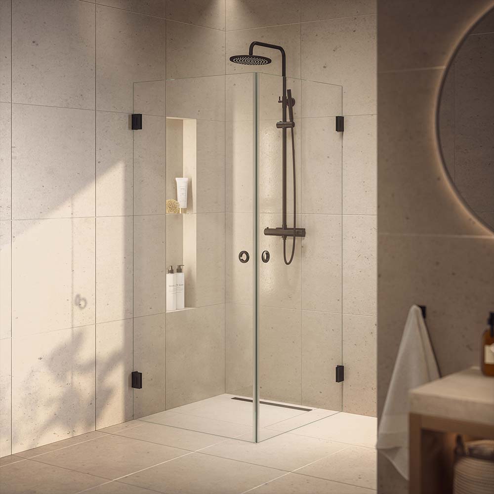 Westerbergs Lynx duschhörn prägla av en avskalad och tidlös design där de stora klara glasytorna står i fokus. Det klara glaset skapar ett rent och luftigt uttryck som ger badrummet en känsla av rymd och elegans.
