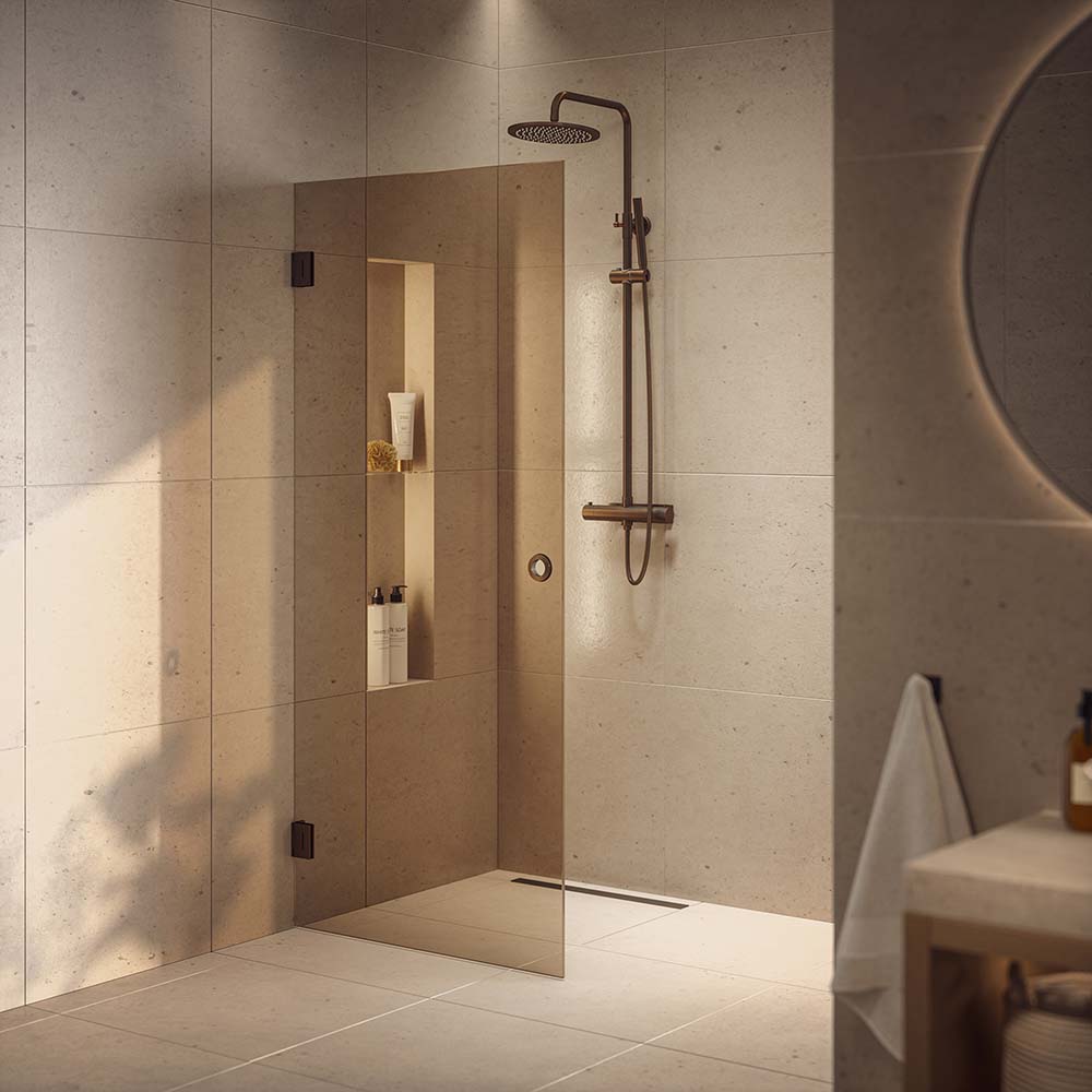 Westerbergs Lynx är en exklusiv duschdörr med smäckra beslag och en elegant, integrerad handtagslösning. När detaljerna hålls på ett minimum får det bronstonade glaset ta plats. Det är utgångspunkten för Lynx duschlösningar – en exklusiv duschdörr där det sotade glaset och de vackra detaljerna står i fokus. Den tidlösa designen skapar ett luftigt och öppet uttryck som ger badrummet en känsla av rymd och elegans.