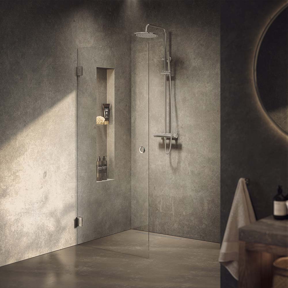 Duschdörren är tillverkad i 8 mm härdat säkerhetsglas och har en elegant, integrerad handtagslösning som förstärker det avskalade intrycket. Lynx duschdörr är vändbar och kan monteras på både höger och vänster sida. För extra flexibilitet kan dörren fällas in mot väggen när den inte används – en genomtänkt, elegant lösning, även för mindre badrum.