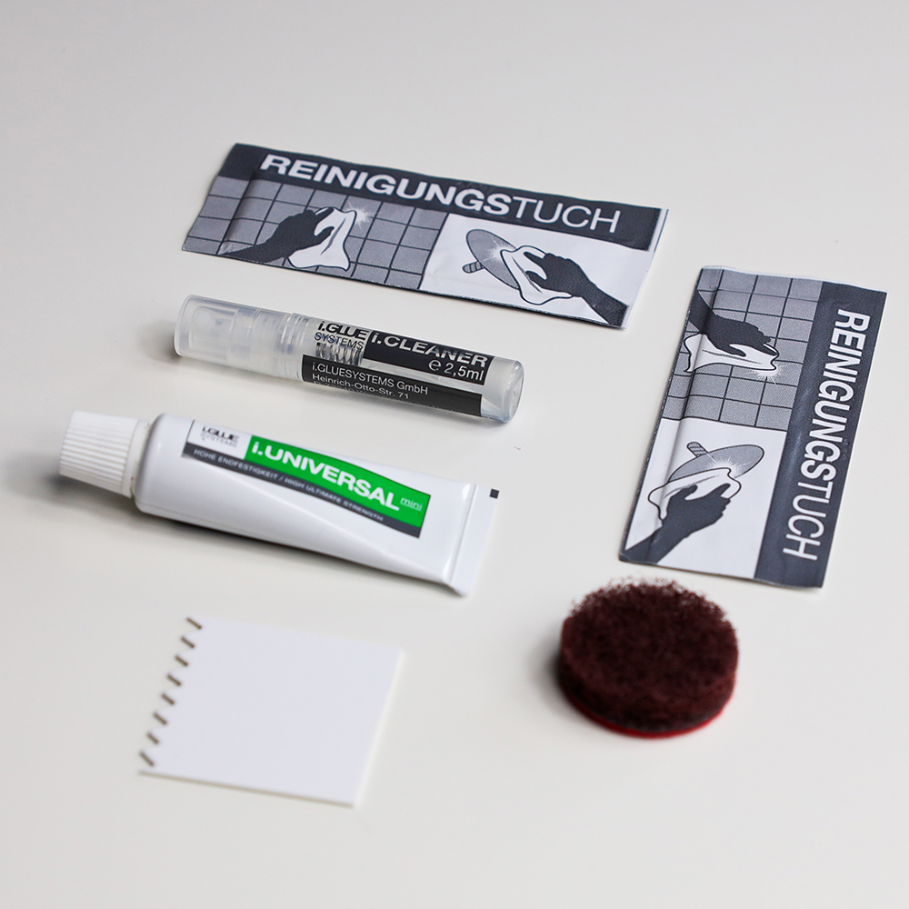 Limkit för att limma fästbeslag eller duschprofiler. Limkitet räcker till limning av ett set limbrickor till Nejd duschdörr. Rengöringskit är inkluderat.