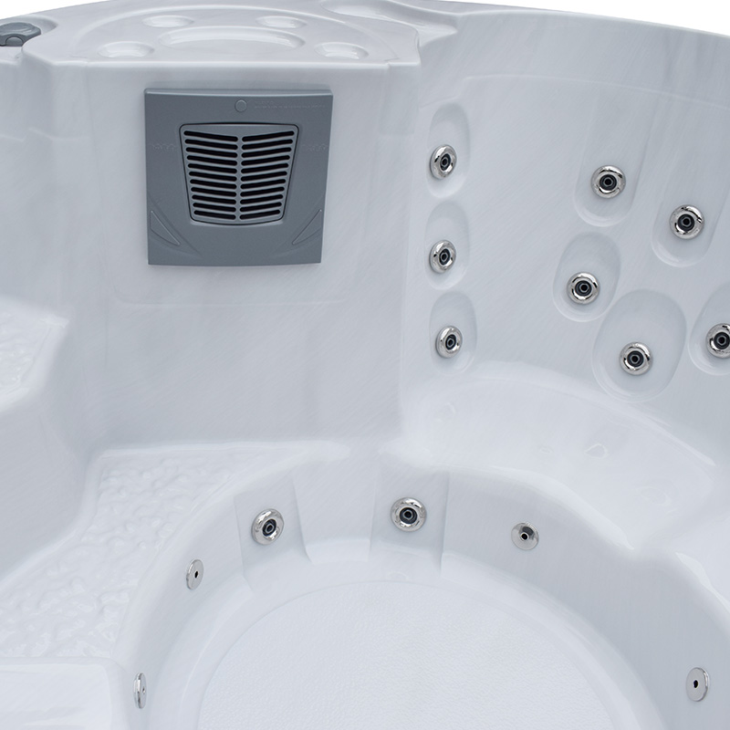 Marstrand är kanske vårt mest lättplacerade kar tack vare sin runda form. Fem bekväma sittplatser och 29 massagejets ger dig en avkopplande massage. Du avgör om du vill ha massagen igång i hela karet eller bara vid vissa platser. Termolocket ingår och är ett viktigt tillbehör som kapslar in värmen och håller nere energiförbrukningen. Ett extra tjockt termolock är 2cm tjockare och lämpar sig därför för spa som placeras i ett kallare klimat där det är större snörisk. Locket är i en grå färg och kommer med 4 fästen som enkelt monteras på spats panel. I fästet finns även låsmöjlighet. Locket har en sluttning och är 13cm i mitten och 8cm i kanterna. Alla Westerbergs utespa är wifi-redo för en enkel inkoppling av Westerbergs Wifi-modul från Balboa.